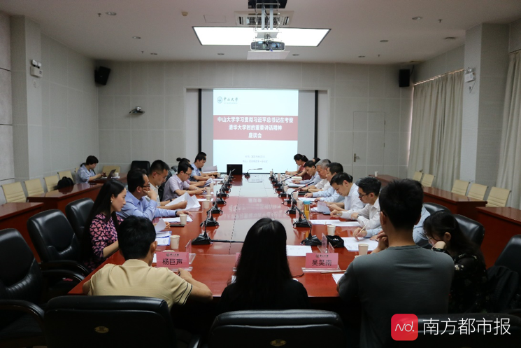 4月21日,中山大学在广州校区南校园召开师生代表座谈会,组织学习习近平总书记在清华大学考察时的重要讲话精神。校党委书记陈春声、校党委副书记余敏斌出席座谈会,各院系师生代表及相关职能部门负责人共20人参加会议。