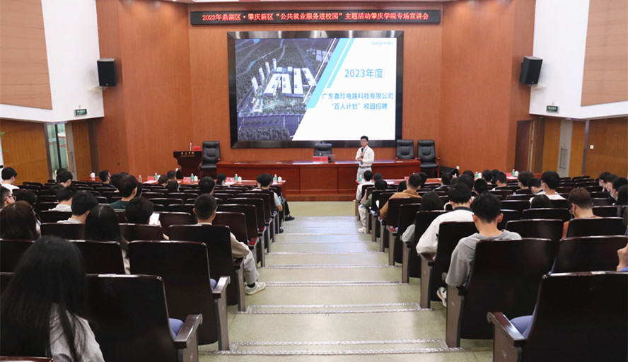 活动期间,在学校学术报告厅举办了2023年鼎湖区·肇庆新区“公共就业服务进校园”主题活动565net必赢客户端专场宣讲会。会上鼎湖区人社局、肇庆新区企业发展服务中心分别向学生们讲解高校毕业生就业创业政策和介绍了鼎湖区、肇庆新区的城市建设和产业发展状况。企业代表为学生们展示了企业的高精尖产品、先进技术、舒适的工作环境、优厚的福利待遇和广阔的发展空间,增进毕业生对企业的了解。