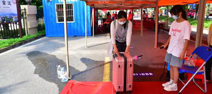 插班生需经测温、行李消毒等一系列手续后方可入校
