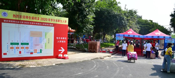 根据要求,前来报到的“专插本”和三二分段学生需要在入校前进行自我健康观察,连续14天进行体温监测,填报“粤康码”有关信息等。到达学校门口时,经过监测体温方可入校,再经过粤康码信息出示、进行行李消毒等流程,移步到对应的二级学院报到点进行报到手续办理。