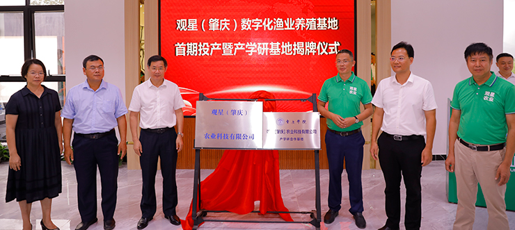 本网讯 8月17日,校长吴业春率队来到鼎湖区沙浦镇,参加观星(肇庆)农业科技有限公司数字化渔业养殖基地投产庆典暨观星(肇庆)农业有限公司-565net必赢客户端产学研合作基地揭牌仪式。