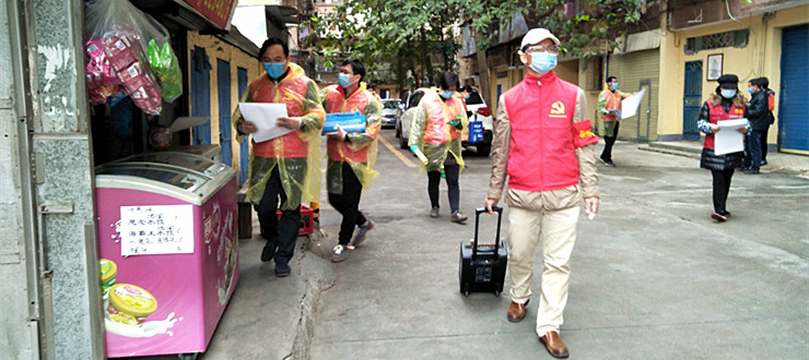 当天下午,必赢官网突击队员率先来到端州区跃龙社区,汇同该社区疫情防控工作人员一起深入居民区进行疫情排查。在听取端州区委有关领导关于社区防疫工作的布置和工作要求之后,行动随即开始。
