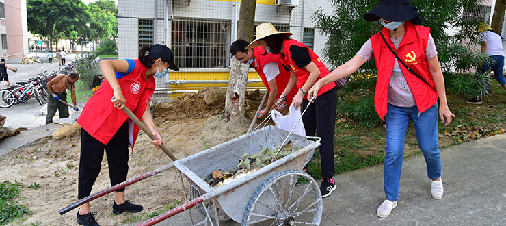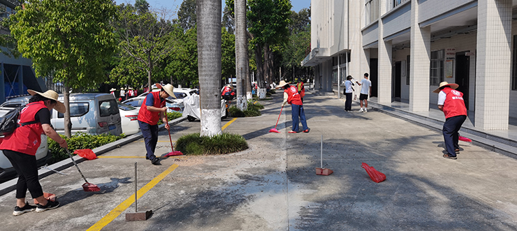 用心灵可以孕育爱,用双手可以创造美。活动中,来自机关各部门的党员干部、志愿者同心协力,贯彻创文攻坚和爱国卫生运动的要求,共同开展校园环境整治,送师生一份整洁,给校园一件新衣,并为即将到来的新学期增色添彩。