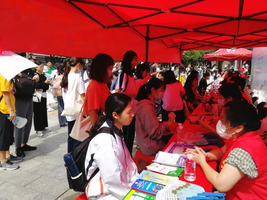 10月10日,活动在紫荆路第三饭堂侧展开。市卫生健康局二级调研员伍润文,校党委副书记谢冠华等领导出席了本次活动。参加活动的砚园学子众多,为做好防疫工作,大家带着口罩有序排队咨询。
