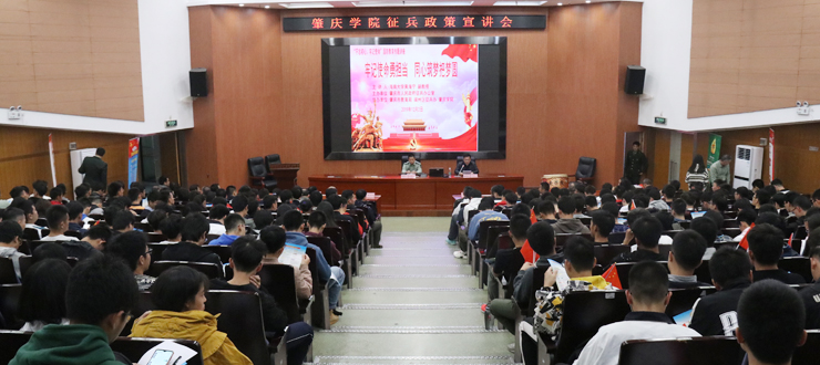 海南大学副教授黄海宁、肇庆市中医院副主任医师卢德光受邀作专题辅导。黄海宁作了题为《牢记使命勇担当、同心筑梦把梦圆》的动员报告。他联系当代大学生的实际,从改革开放巨大成就、周边安全形势、习近平主席强军思想、当代青年如何实现中国梦以及参军入伍的情怀等五个方面进行宣讲,强调当代大学生要把推动国防建设作为一项光荣的使命,大学生参军入伍是一项光荣的选择。卢德光作了题为《关注体格健康,铺平从军之路》的宣讲,他首先介绍征兵体检的标准和要点,并就近年来大学生征兵体检过程中出现的有关问题做解答,提醒大学生在征兵体检中要及时发现并解决问题,顺利通过征兵体检。