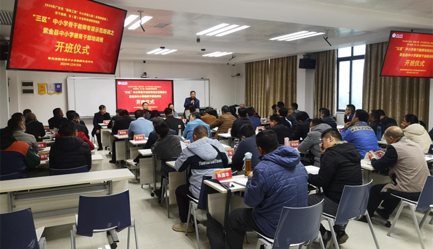 本网讯 12月18日,由教师发展中心和马克思主义学院共同承办的紫金县中小学德育管理干部培训班开班。副校长肖起清,马克思主义学院院长曹顺霞,来自紫金县各中小学的52名学员出席开班典礼。