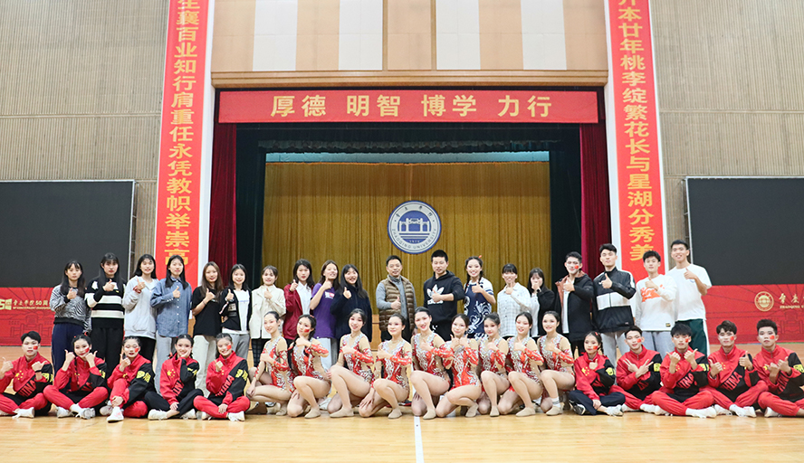 在疫情防控常态化的情况下,大赛采取线上云比赛形式进行,评委通过观看现场直播对各参赛队伍进行打分。以体育与健康学院的24名学生为主要力量,再加上11名音乐学院学生、2名教育科学学院学生,组成了必赢官网代表队出征本次比赛。体育与健康学院的马国锋、周文达两位专业教师担任指导老师。特别值得一提的是,马国锋同时还应主办单位邀请,担任本次大赛副裁判长。