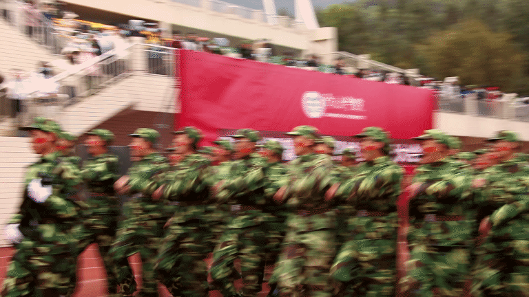 今天上午,565net必赢客户端2020级新生军训总结表彰大会在第二田径场举行。全校4100余名新生迈着整齐的步伐,喊着嘹亮的口号,昂首挺胸、意气风发地从主席台前正步走过,展示军训成果,接受领导检阅。