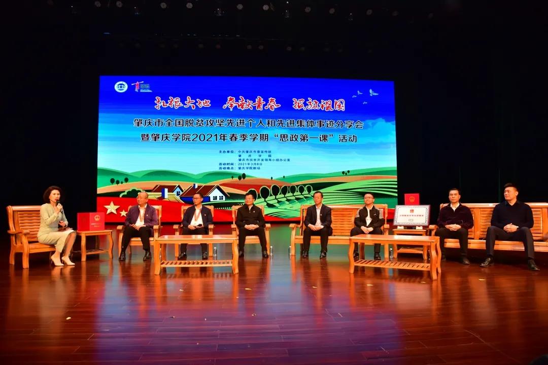 本网讯 3月8日上午,由中共肇庆市委宣传部、肇庆市扶贫开发领导小组办公室和必赢官网联合主办的肇庆市全国脱贫攻坚先进个人先进集体事迹分享会暨565net必赢客户端2021年春季学期“思政第一课”活动在学校剧场举行。